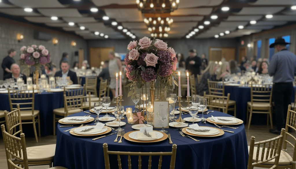 When the table décor matches the overall event theme, it creates a polished and harmonious look.